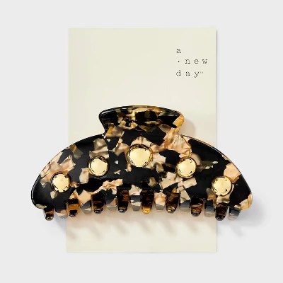 Add trendsetting style to your hair accessories collection with the Acrylic Tortoise Pattern and Studded Hair Claw Clip from A New Day™. This gold-tone claw hair clip is covered with a tortoiseshell pattern and features a studded design for a gorgeous look. Made of acrylic, this claw hair clip is great for securing and styling hair and suits all hair types.