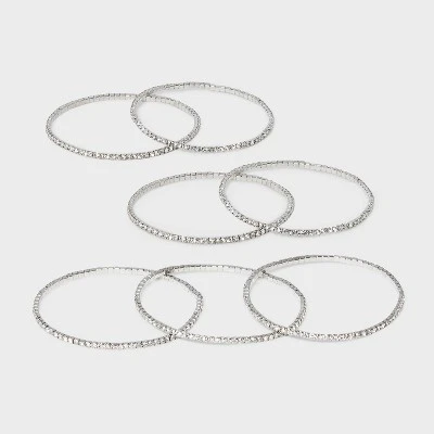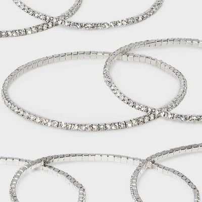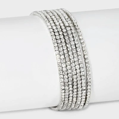 Get ready for any occasion with this 7-Piece Clear Glass Stone Stretch Bracelet Set from A New Day™. Designed with stretch and made from silver-tone metal, this accessory set includes seven bracelets embellished with faceted clear glass stones for a stunning look. You can wear one bracelet on its own or stack them together for a pop of layered style.