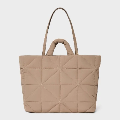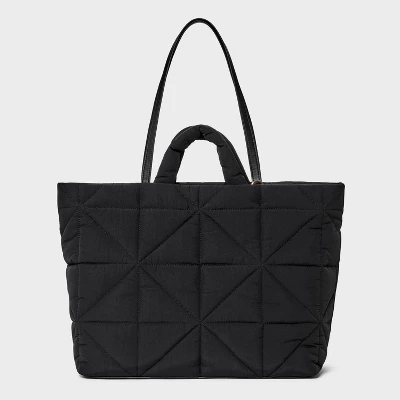 This Kate Tote Handbag from A New Day™ in a solid color showcases an unstructured silhouette with a geometric quilted finish for a chic, textured look and it goes well with any of your outfits. The interior accessories pocket, zip pocket and exterior side pockets help keep your belongings organized. Designed with a magnetic closure, this stylish tote handbag is easy to carry with double shoulder and grab handles.