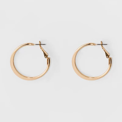 These Medium Flat Hoop Earrings from A New Day™ are the perfect accessory for everyday wear. In a flat hoop style with a medium-size design and shiny finish, this pair of earrings is made from nickel-free metal and sports a leverback closure for easy on and off. Pair these simple yet stylish hoops with anything from your most casual jeans to glamorous dresses.