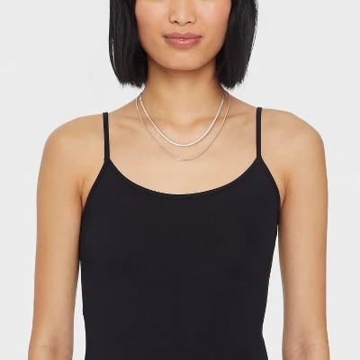 Whether you’re looking to create a simple look or an eye-catching look, this 2-Piece Plated Herringbone and Box Chain Necklace Set from A New Day™ will meet all your styling needs. This silver-tone necklace set includes one plated herringbone and one box chain necklace for versatile styling. Great to wear alone or mix and match with other accessories, this silver-tone necklace set helps you create a stunning look no matter the occasion.