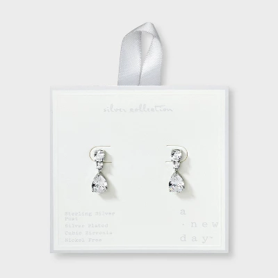 Create a stunning look by accessorizing with the Cubic Zirconia Pear Drop Earrings from A New Day™. These silver-plated drop earrings feature a pear dangling down from the round cubic zirconia stone for a standout look. Made of nickel-free metal to suit most skin types, these earrings have postback closures for an easy, secure fit.
