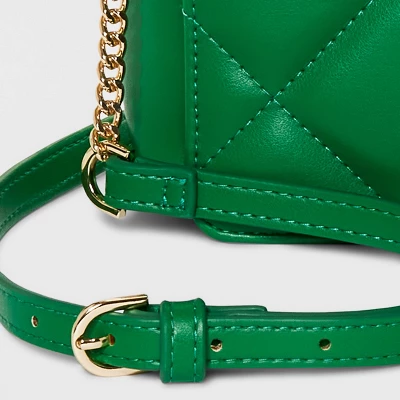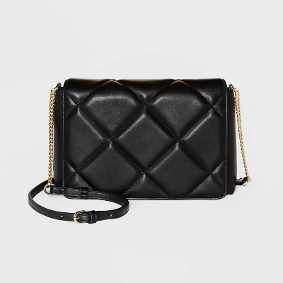 Bring classic style to your day with this Square Woven Crossbody Bag from A New Day™. This crossbody bag features a main compartment with an interior zip pocket secured by a magnetic closure for storing your daily essentials like your phone, IDs, credit cards, keys and small makeup accessories. The solid-color structured bag has a faux-leather quilted surface to elevate your everyday style. The bag boasts a classic rectangular silhouette with an adjustable faux-leather shoulder strap, which is bordered with gold-tone chain link embellishments on each end for added flair and convenient carrying over your shoulder or across your body.