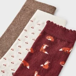 Women’s Foxes Scallop Cuff 3pk Crew Socks – A New Day™ Burgundy/Brown Heather/Ivory 4-10