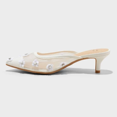 Add floral charm to your going-out looks with the Delilah Mesh Floral Mule Heels from A New Day™. These medium-width mule heels feature a mesh vamp adorned with floral detailing for a standout look. Set on 2-inch Louis heels, the sandals boast memory foam insoles for comfortable walking. Pair these mule heels with anything from sundresses to blouse-and-skirt combos for a variety of chic ensembles.