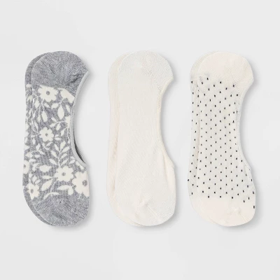 - 3pk liner sock set includes 1 solid pair, 1 pair with black dots and 1 pair with floral print
