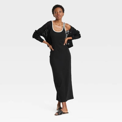 Step into summer looking and feeling your absolute best in this Knit Midi Tank Dress from A New Day™. Made of cotton-spandex blend fabric for comfortable wear, this sleeveless midi tank dress features a round neckline with contrast edging for an on-trend look. Style it with your choice of footwear and accessories to complete the look.