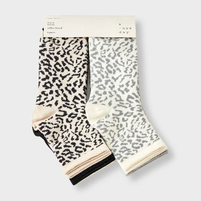 Add a fun mix to your basics with this Women’s Leopard & Solid Ribbed 6pk Ankle Socks – A New Day™ Black/Gray/Ivory 4-10. Featuring a blend of solid tones and leopard prints, these ribbed socks bring comfort and variety to your everyday rotation. The lightweight stretch fabric makes them easy to wear with sneakers or slip-ons, and the soft ankle cut works well for all-day use, whether you’re lounging or heading out.