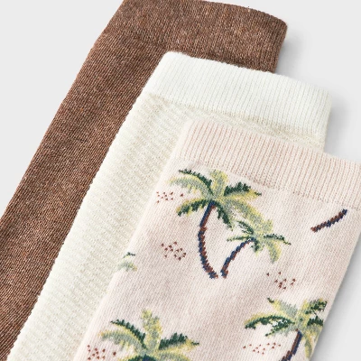 Step into comfort with the Women’s Palm Tree 3pk Crew Socks from A New Day™ in Pink/Brown Heather/Ivory 4-10. Featuring a lightweight knit blend of cotton, recycled polyester, spandex, nylon and polyester, these socks offer a soft, breathable feel for all-day comfort. The smooth toe seams ensure a seamless fit, while the pink, brown heather and ivory colorways bring a playful vibe to your outfit.