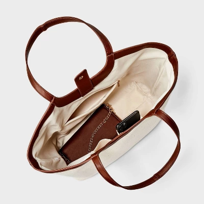 Meet your everyday needs and prepare your essentials in the XL Cut Out Tote Bag from A New Day™. This tote bag features a cell phone pocket and zip pocket to help keep cell phones and other small items separate. The magnetic closure keeps contents secure, and the cutout double handles allow easy carrying.